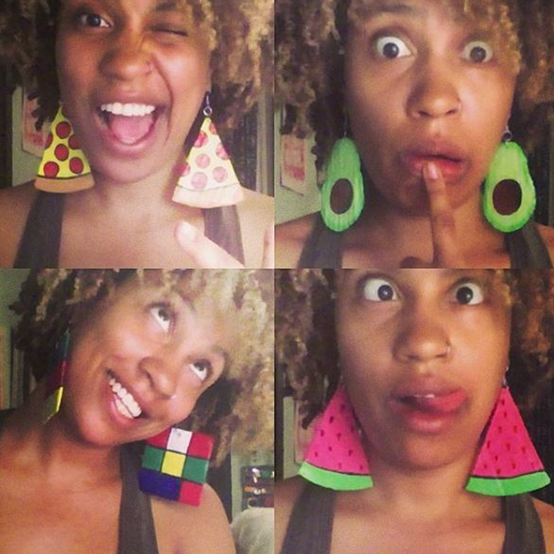 I love pop art. I love taking everyday items and recreating them so they look real, while also not real putting an earring hook in them, and dangling them from my ears.