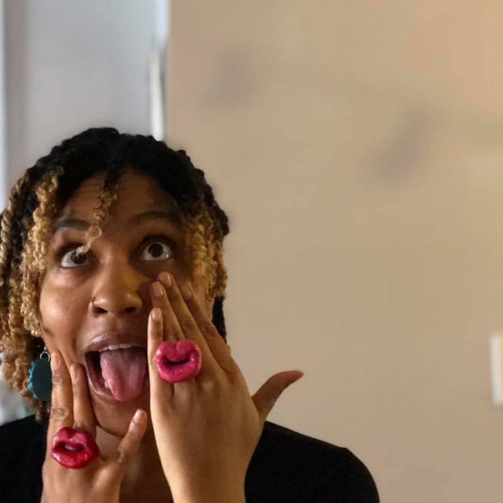 My signature earrings are my french fries. I have had them for about 13 years. I found the toy french fries at this recycle shop called the Scrap Exchange in Durham. I instantly thought those toys would make excellent earrings, so I took them home, poked a hole in them and wore them almost every day for a year.”