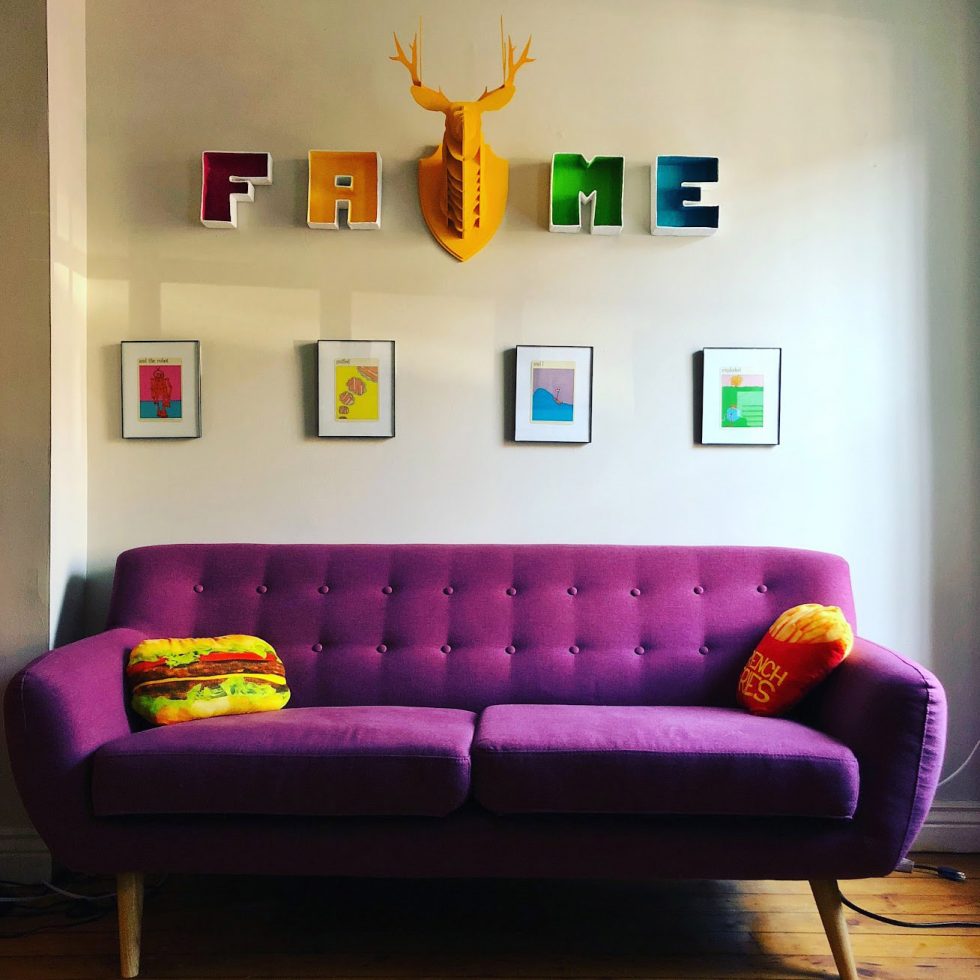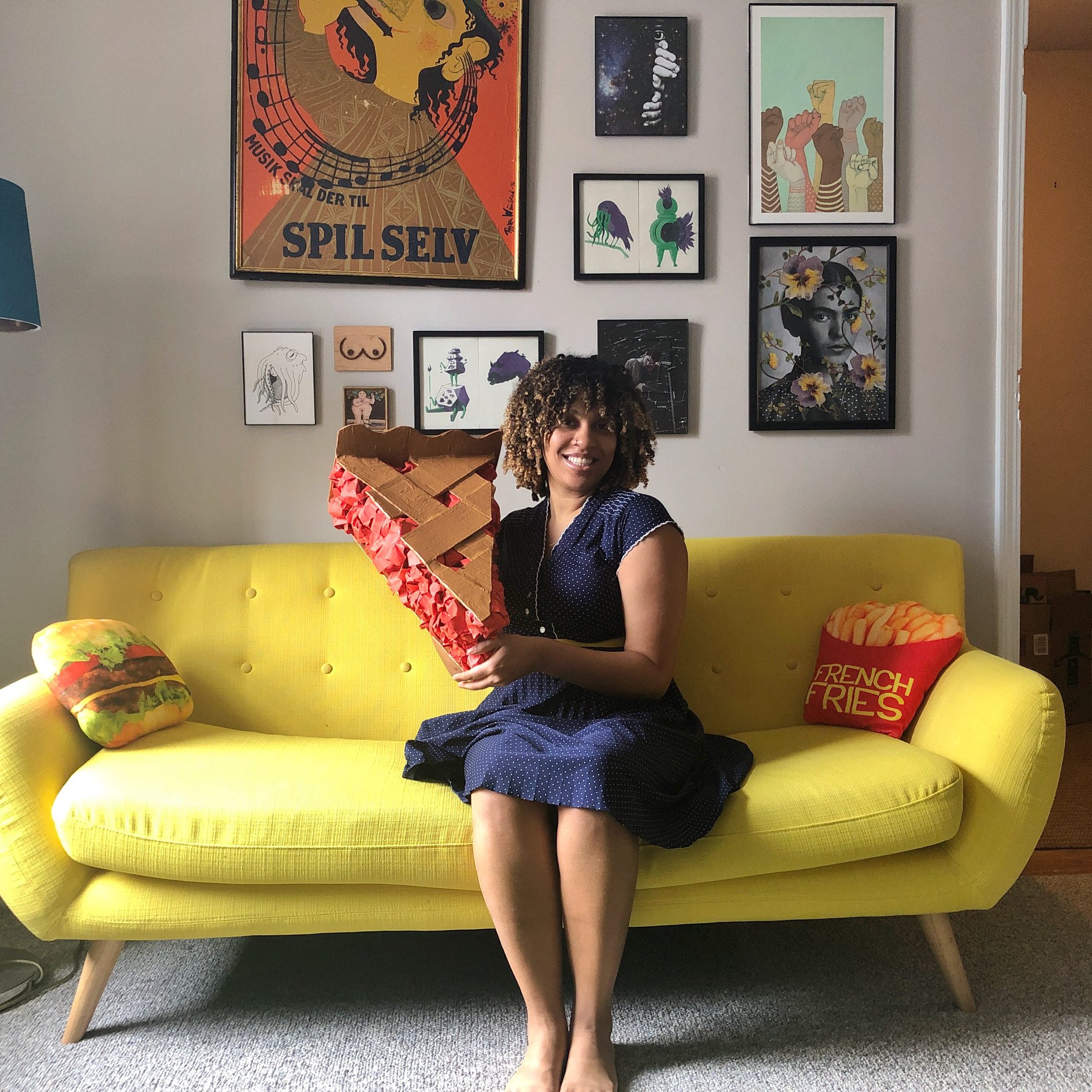 I started making paper mache when I still lived in North Carolina, but it became a full blown obsession by the end of my time in New York. My roommate Carmen would come home and there would be a new giant slice of cherry pie hanging on the wall, or the pizza slice I had made a few months early now had a dopey looking face and braces. Home is so important to me and I want it to be peaceful and fun.
