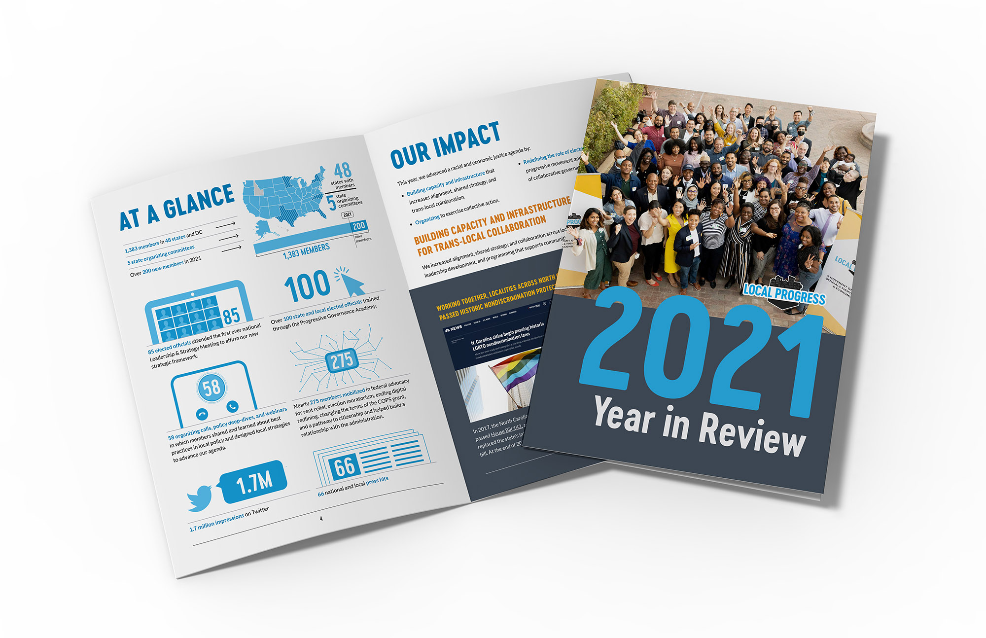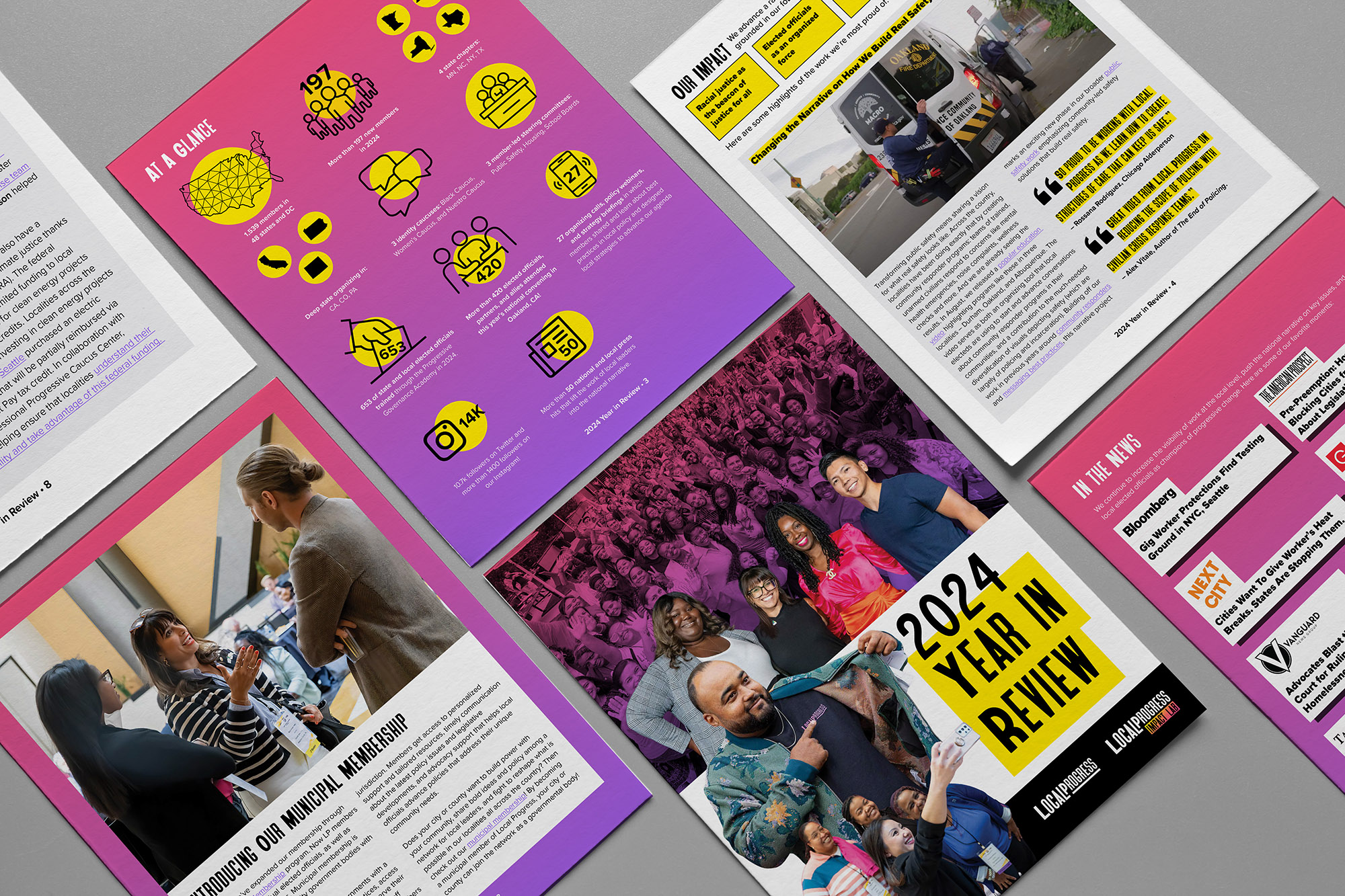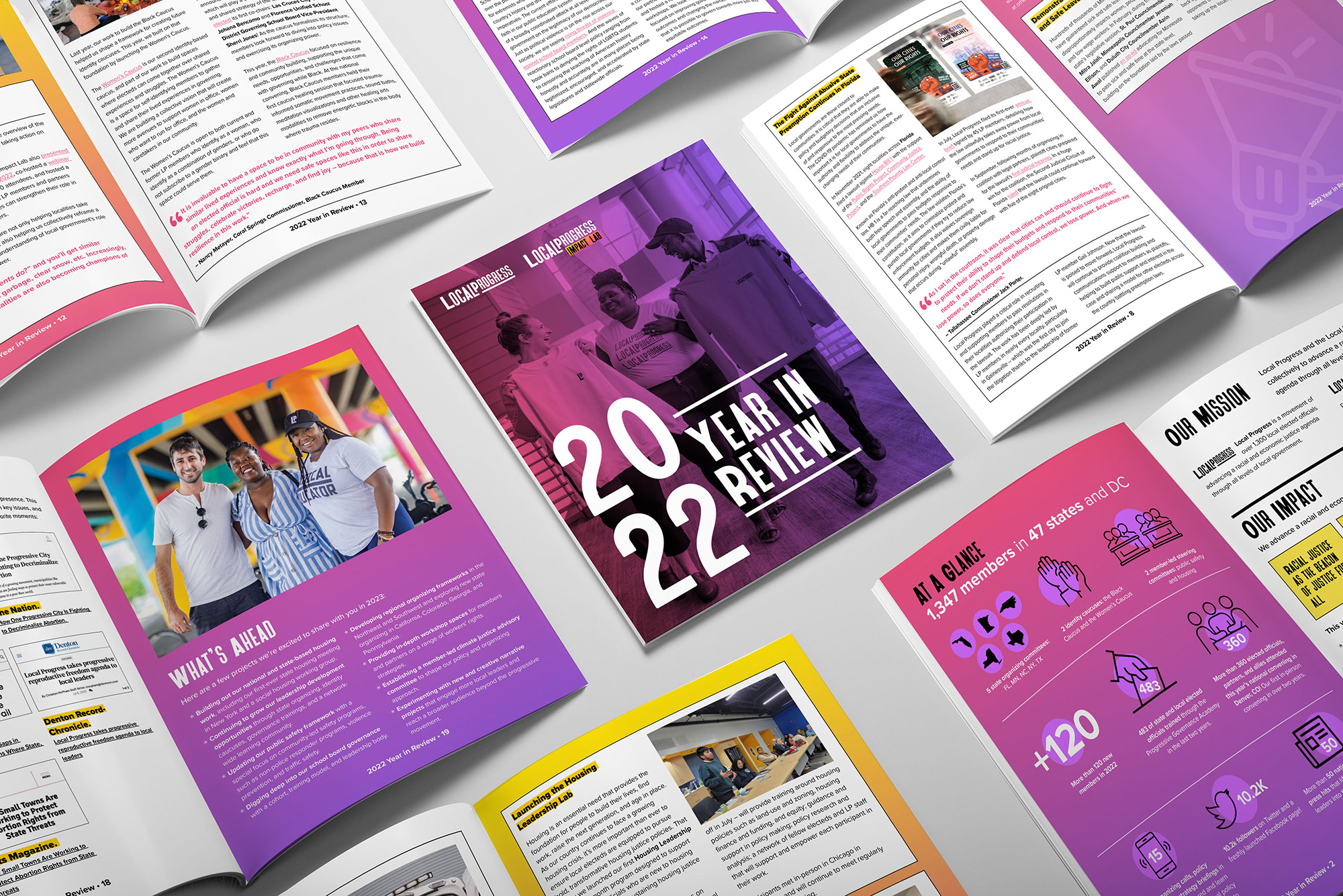 Local Progress est une initiative citoyenne au sein de laquelle des élus locaux se réunissent pour promouvoir la justice raciale et économique au sein de nos communautés. J'ai eu l'occasion de créer des rapports annuels et des logos pour leur conférence annuelle, qui met en lumière l'important travai